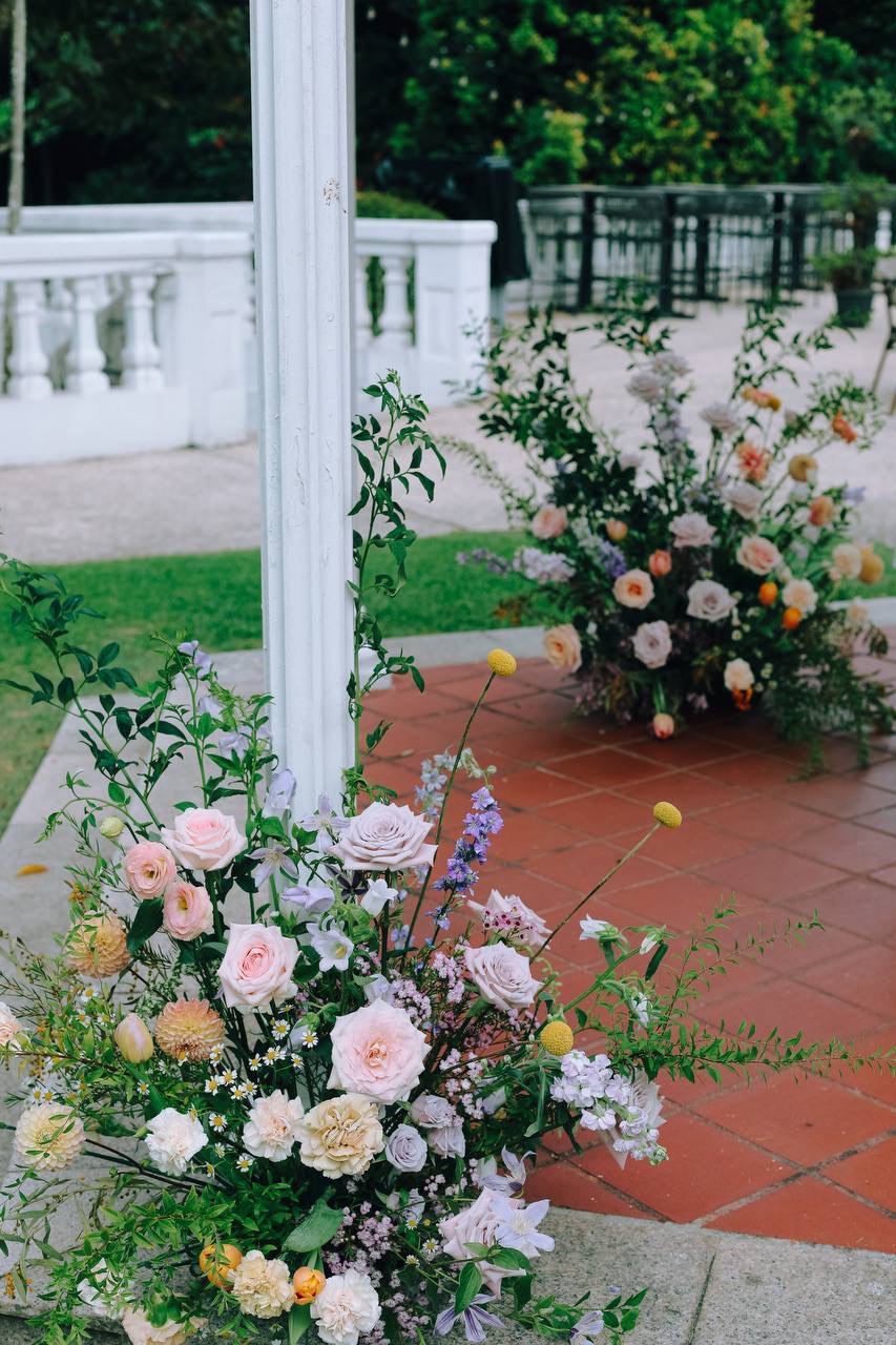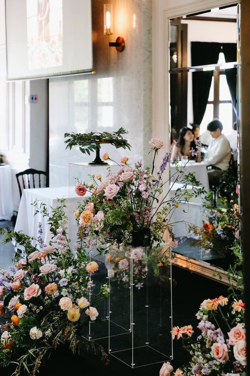 We quickly repurposed the hedges from their solemnisation to their dinner venue! It was a quick 10 mins turnover time and we had to ensure it was ready before the guests entered!