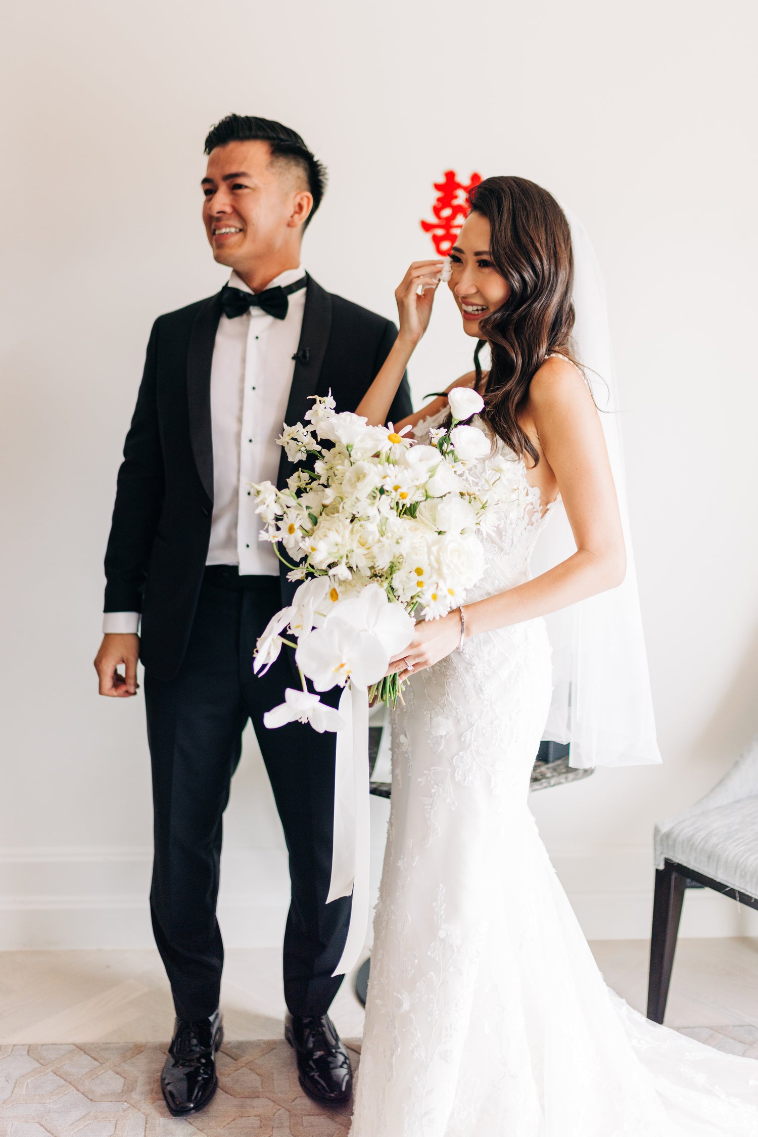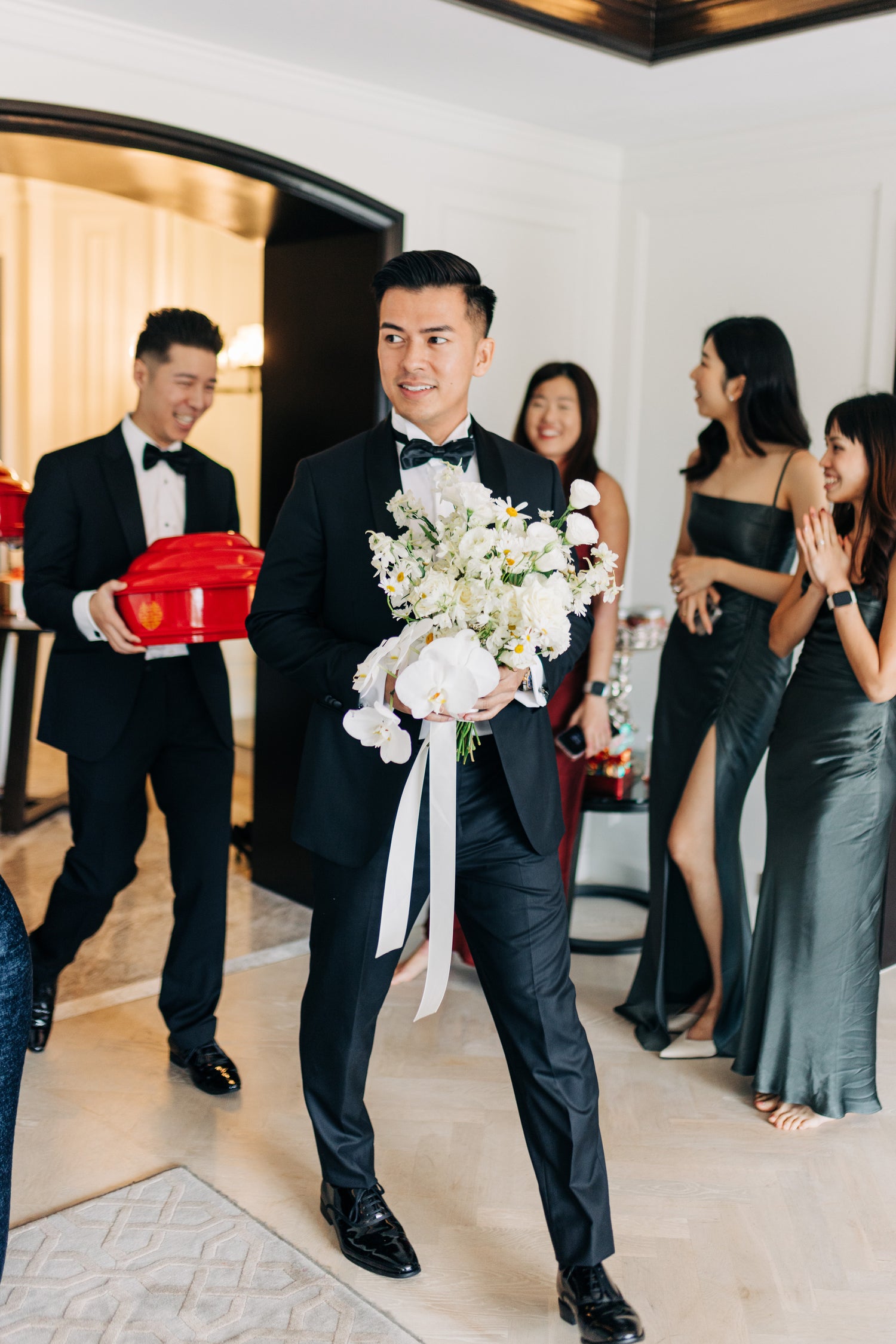 The groom and the groomsmen's first time experiencing a gate crash! The bridesmaid didn't make it easy for them at all. Of course they had to work to pick the gorgeous bride! Here's Othilia's bouquet in full whites that screams her personality!