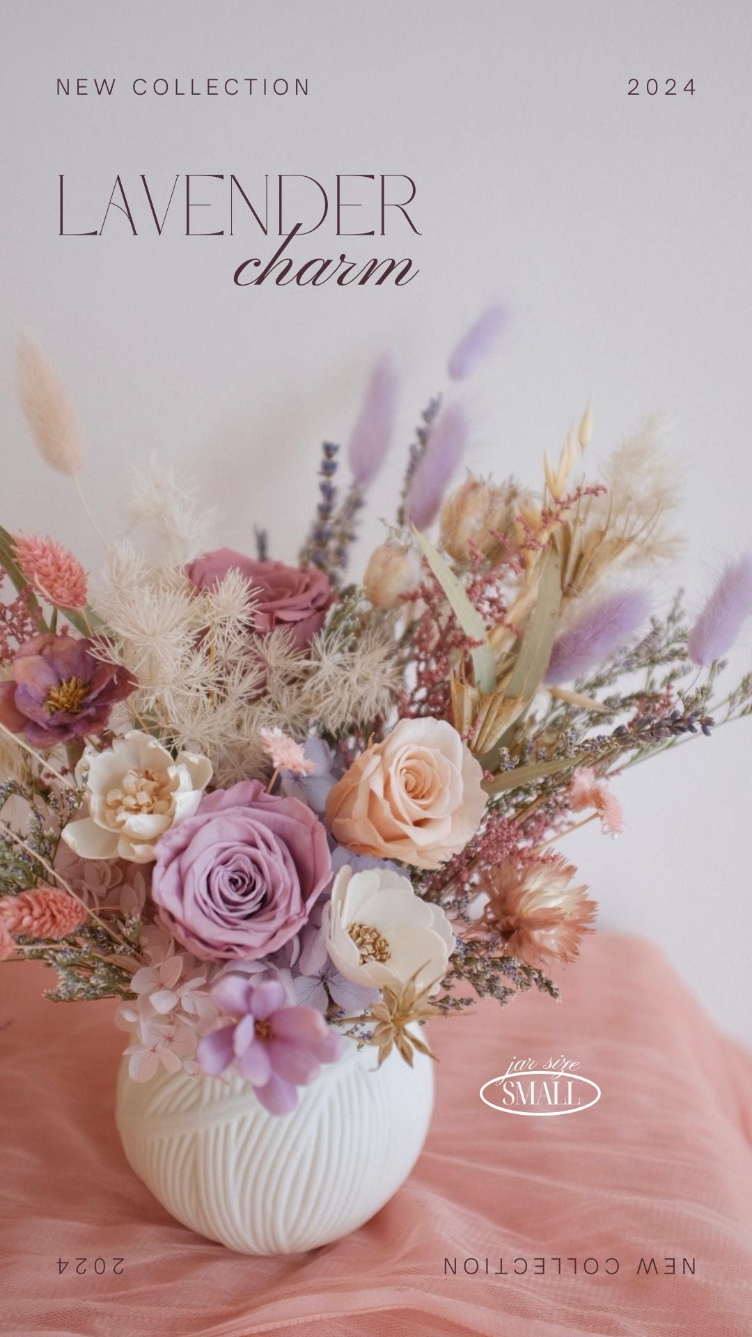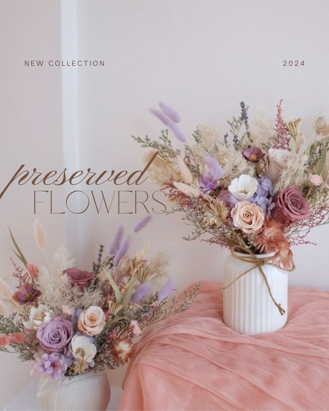 Preserved and dried flowers that last forever. A mix of lavender purple rose, dusty pink vintage rose and a mix of preserved and dried foliage and flowers. Preserved flowers last up to 6-12 months or longer when kept in proper care away from sunlight and in a dry cool area.
